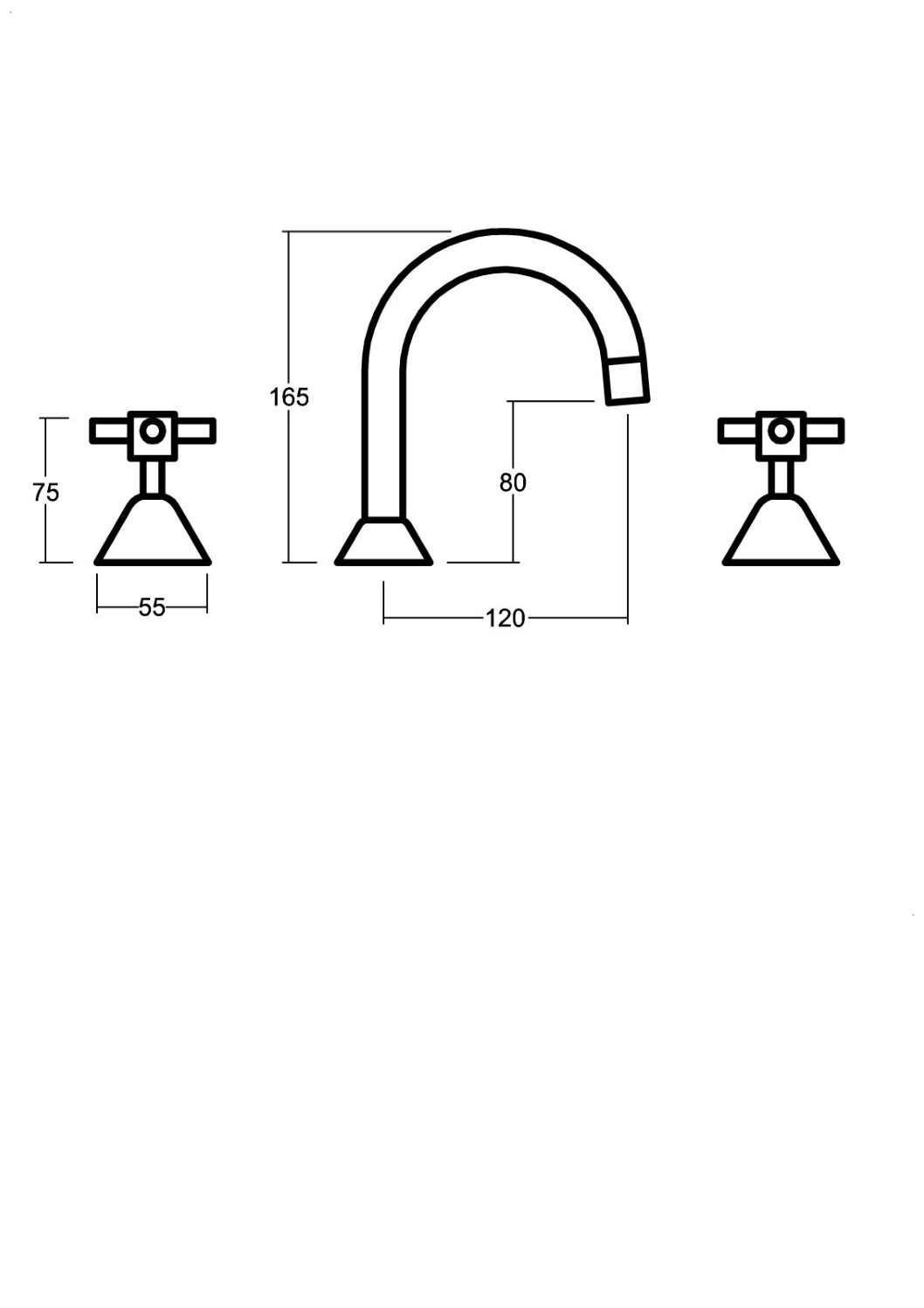 • Simple and classic cross handle design with a fixed curved spout